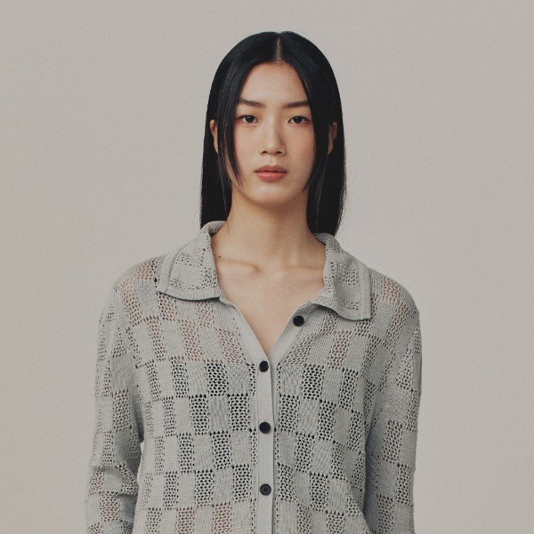 COLLAR RECTANGLE KNIT CARDIGAN_FOG GREY