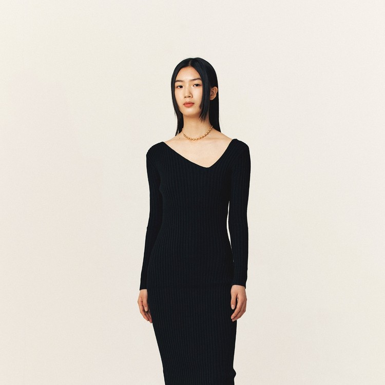 NECK POINT KNIT ONE-PIECE_BLACK
