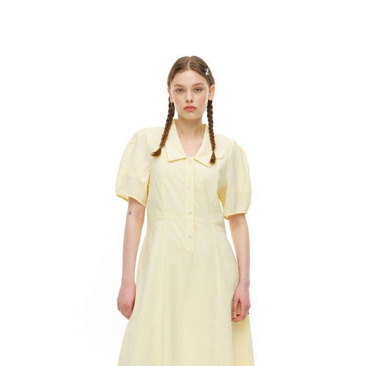 CRINKLE VOLUME COLLAR DRESS_YELLOW